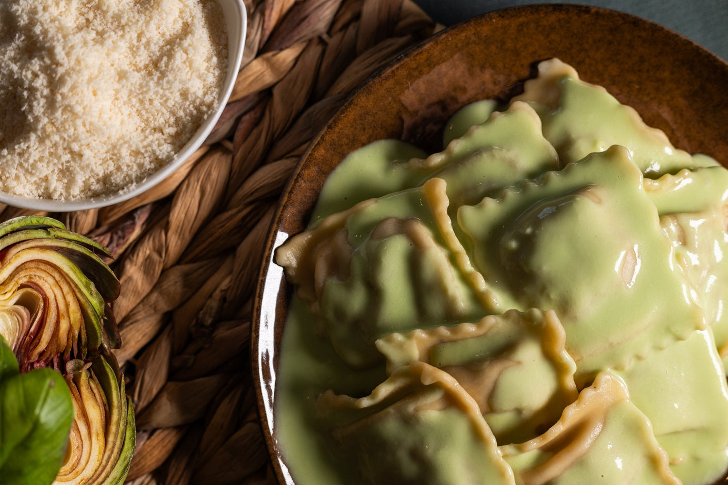 -Raviolis artichauts et sa sauce crème ciboulette X2 (2 personnes/500g)